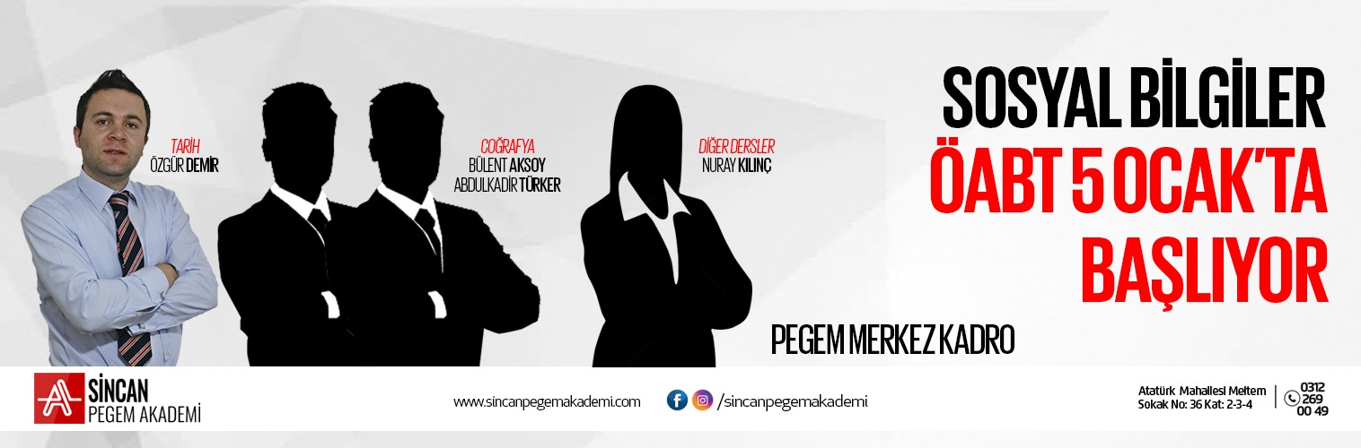 Pegem Akademi Genel Merkez kadrosuyla Sincan'da Sosyal Bilgiler Öğretmenliği ÖABT programı başlıyor. Sınırlı sayıda kontenjandan yararlanmak için acele edin.